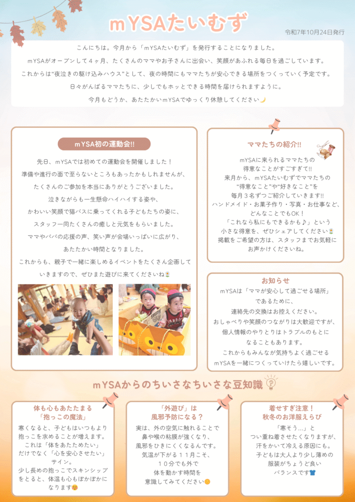 mYSAでは紙で掲載しておりますので、ママのゆっくりスペースで